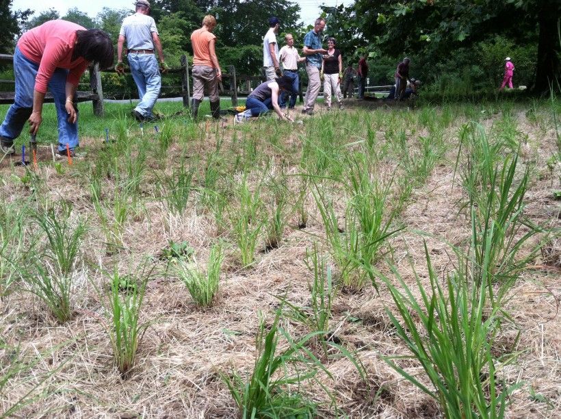 What better way to get started than with the all hands on… dirt bulletin that went out to employees and volunteers. Dozens reported for duty on Tuesday, July 23, 2013, to start a three-day effort transforming some of the grounds’ turf areas into new native plant and wildflower gardens. What a colorful cast of characters. And that was just the plants.