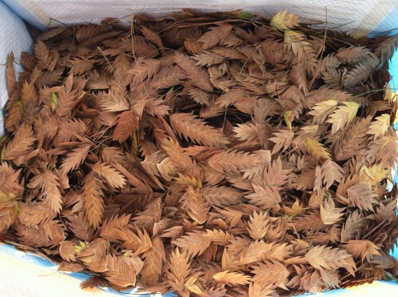 Inland Sea Oats, River Oats, Wild Oats, a.k.a. Chasmanthium latifolium. Oh, and Indian Woodoats. Or, as the Brandywine Wildflower Journal says, Chas. Call it what you will, but if you need a good grass for your garden, just call it.