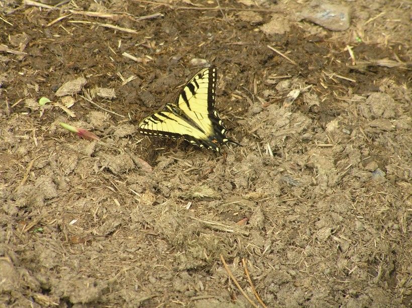 While visiting one of the Conservancy's easements last week, I came across several Eastern Tiger Swallowtail butterflies that were feeding on manure at the edge of a horse paddock.