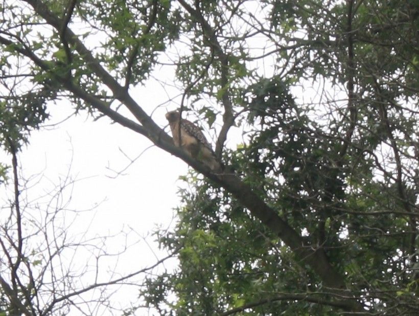 We get to visit some of the prettiest landscapes in the region and see some incredibly special places. In exchange for this privilege, we endure ruthless biting insects, sunburn, deer ticks, poison ivy, thorns of all shapes and sizes (usually embedded in our limbs), and over-the-ankle-deep mud. And that is all just in the summer months; there are also the challenges of winter snow and ice. But some of the perceived “hazards” of the job are really enviable experiences. I am sorely disappointed I missed out on a visit last week to an easement in NewlinTownship where a pair of red-shouldered hawks is nesting. This pair is rather aggressive in protecting their nest site against any potential intruders, including our two assistant easement managers. On their visit to the property, Kristen and Vanessa were forced to repeatedly “duck and cover” to protect their skulls from the talons of this pair of very diligent parents. In between attacks they were able to snap this photo—it’s a little grainy but, in their defense, they were being forced to keep their distance.
