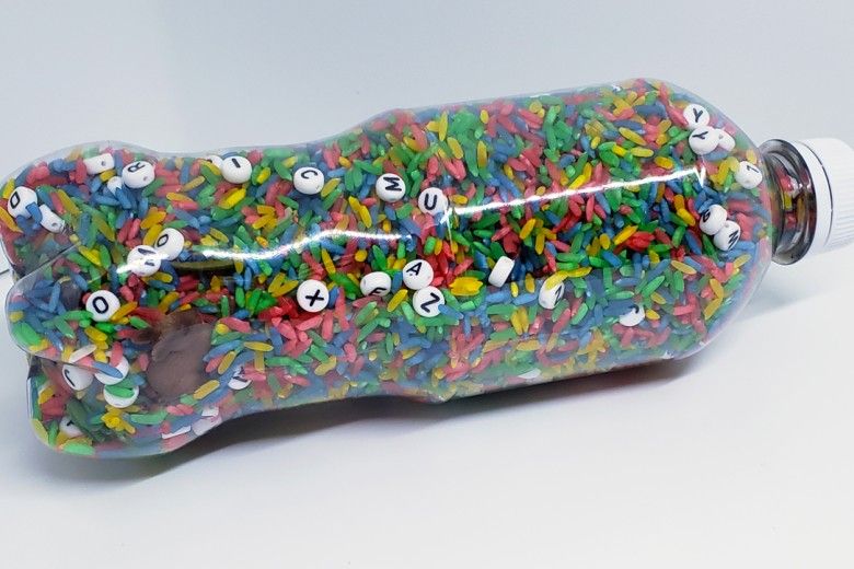Fill the bottle leaving some room at the top. This will allow the contents of the bottle to be moved around. Securely screw on the lid. You may want to glue or tape the lid shut for extra security, especially for younger children.