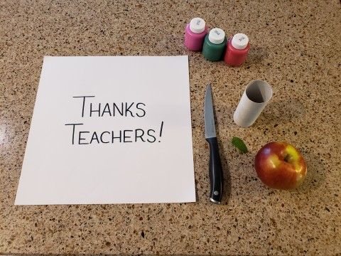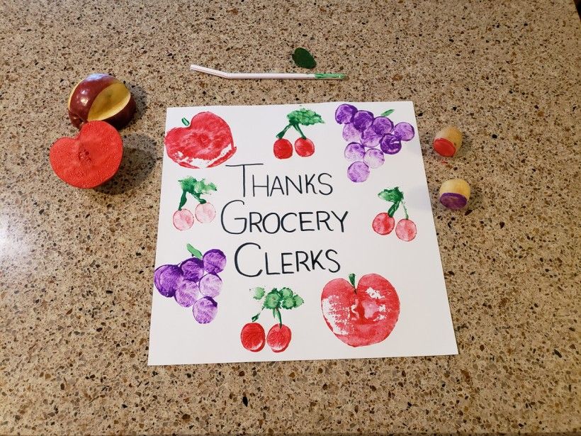 I really wanted to create signs to hang in my windows to show my thanks for those people in my community who are working to keep us safe and healthy. Since I also wanted these signs to be fun to create and bright to display, I decided to make them using homemade stamps.